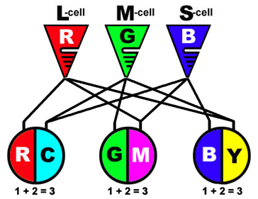 eli vasta(kkais)väriteorian (1905) ja siitä myöhemmin viriteltyjen värinäköä selittävien teorioiden mukaan väriaistimus alkaa verkkokalvon tappisolujen kolmi-