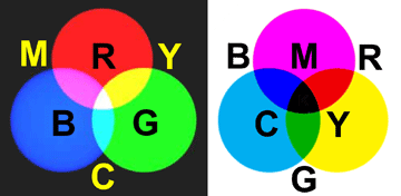 eli valoisuutta lisäävässä värinmuodostuksessa (esim. television RGB-värit) tai se on yksi